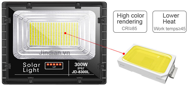 Công suất lớn: Đèn pha led sân vườn Jindian JD-8300L có công suất đến 300w đủ để chiếu sáng một vùng 300m2 rộng lớn với nguồn sáng mạnh mẽ